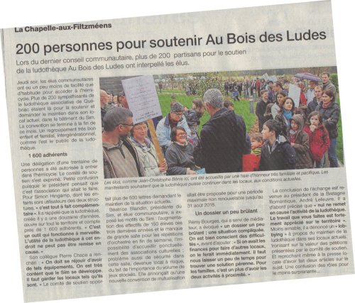 200 personnes pour soutenir Au Bois des Ludes / Ouest France du 14 Mars 2017 14 mars 201714 mars 2017| benebene| 0 commentaire | 16 h 54 min Categories: Ouest-France Revue de presse Navigation de l’article PREVIOUS Previous post: Jeudi récréatif / CCAS de QuébriacNEXT Next post: Ludolire « Créatures fantastiques » à la bibliothèque d’Epiniac Related Post Lud’Halloween à guichets fermés / Ouest France 31/10/13Lud’Halloween à guichets fermés / Ouest France 31/10/13 Lud'Halloween 2013, à guichets fermés ! Read MoreRead More Pic’Ecolegramm : Pour que continue à vivre dans nos campagnes de belles initiatives !Pic’Ecolegramm : Pour que continue à vivre dans nos campagnes de belles initiatives ! Pic'Ecolegramm : "Pour que continue à vivre dans nos campagnes de belles initiatives." Read MoreRead More Intervention Jeux Nature et Cabane en osier vivant pour Bienvenue à la Ferme 35Intervention Jeux Nature et Cabane en osier vivant pour Bienvenue à la Ferme 35 Atelier d'échanges d'expériences avec le réseau Bienvenue à la ferme 35. Read MoreRead More