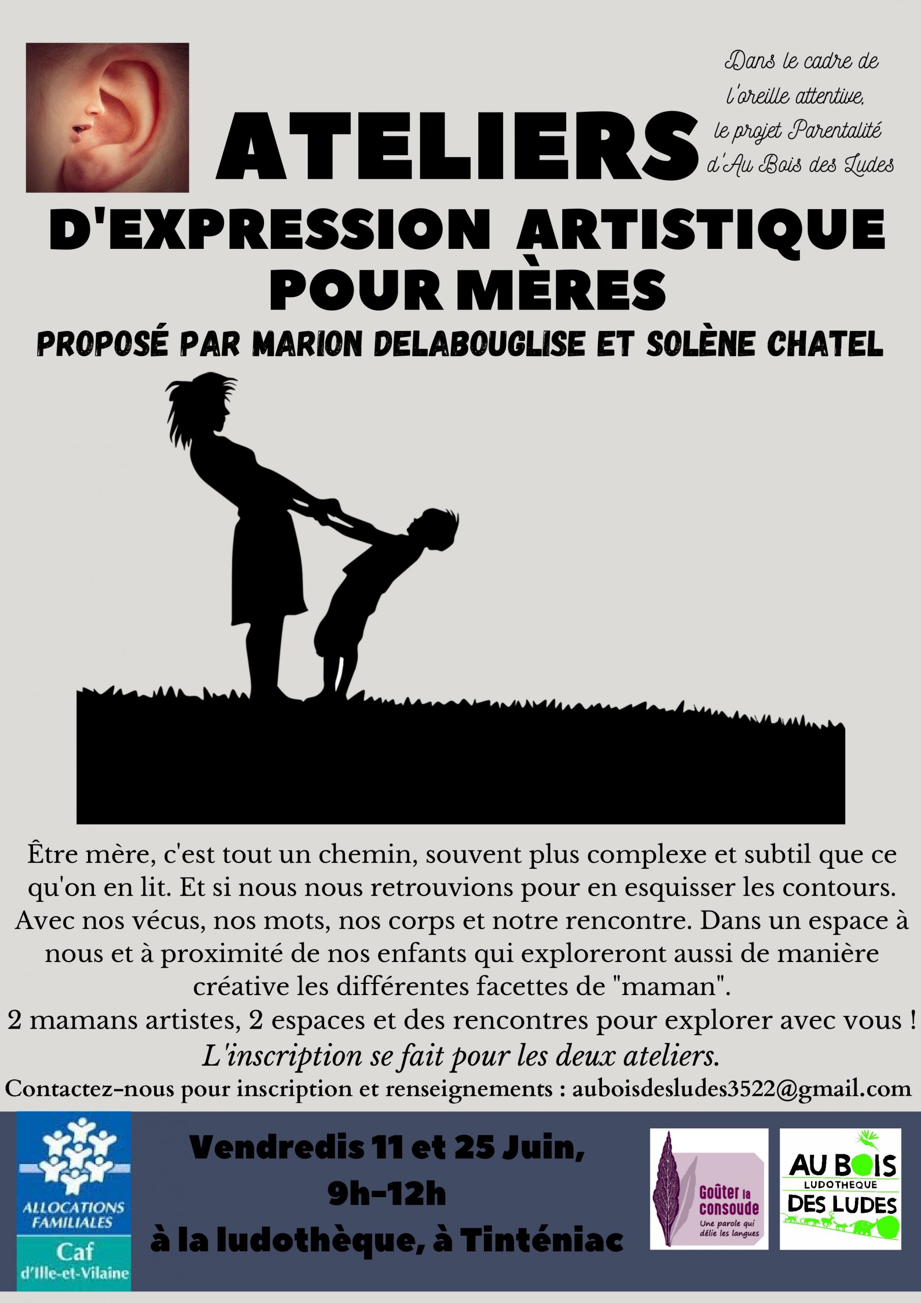 Deux ateliers, deux vendredis matins, proposés par deux mamans artistes qui vous proposent d’explorer votre rôle/place de mamans.
