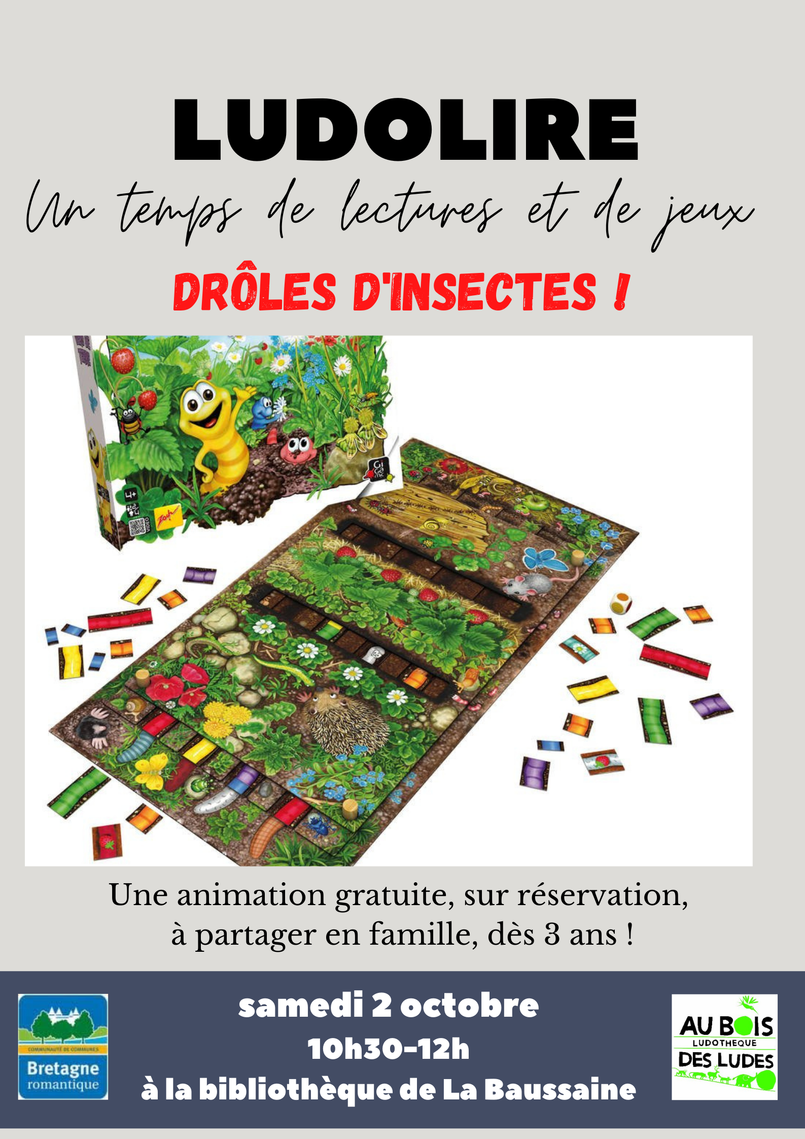 Un temps de lecture et de jeu, sur le thème des insectes, à la bibliothèque de La Baussaine.