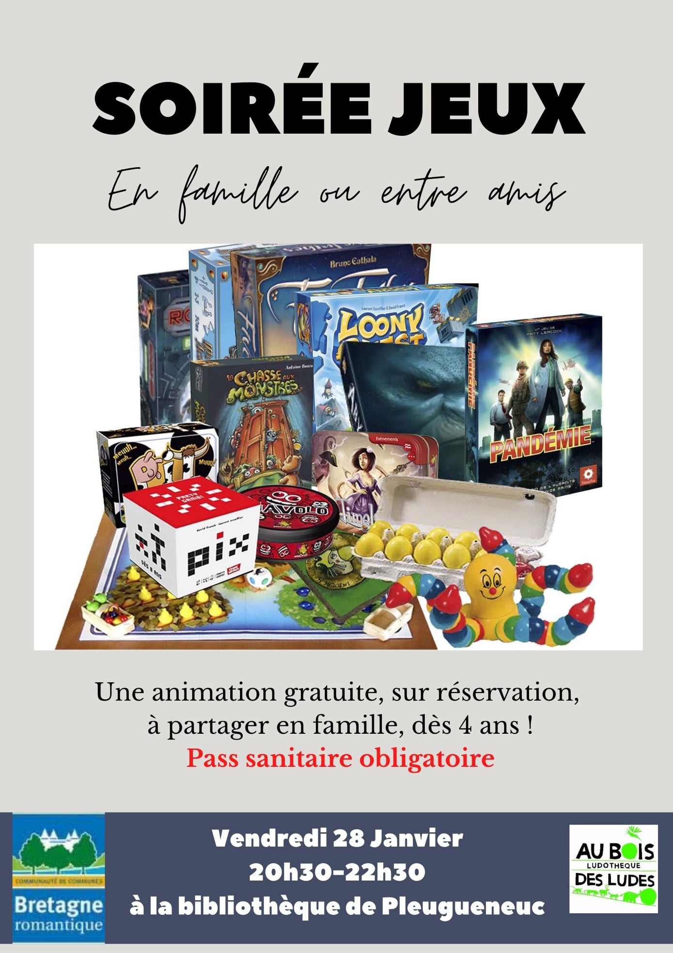 De 20h30 à 22h30, venez partager un moment convivial entre ami-e-s ou en famille à la bibliothèque de Pleugueneuc.