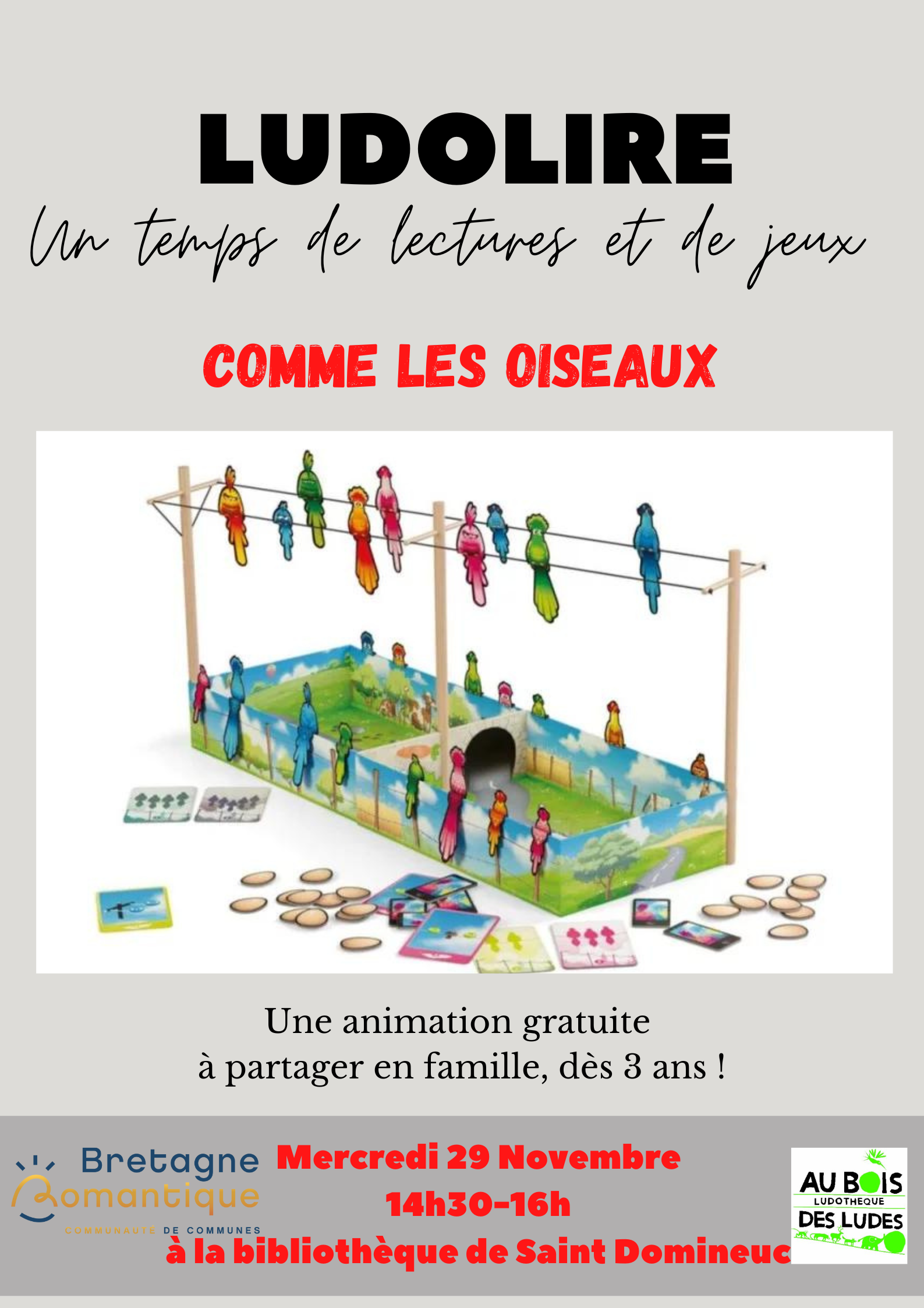 Ce dimanche après-midi, les bénévoles d'Au Bois des Ludes (EVS) vous accueillent pour un temps de jeu à la ludothèque de Tinténiac. Les enfants sont sous la responsabilité des adultes qui les accompagnent. Ouvert aux adhérents de l'association uniquement.