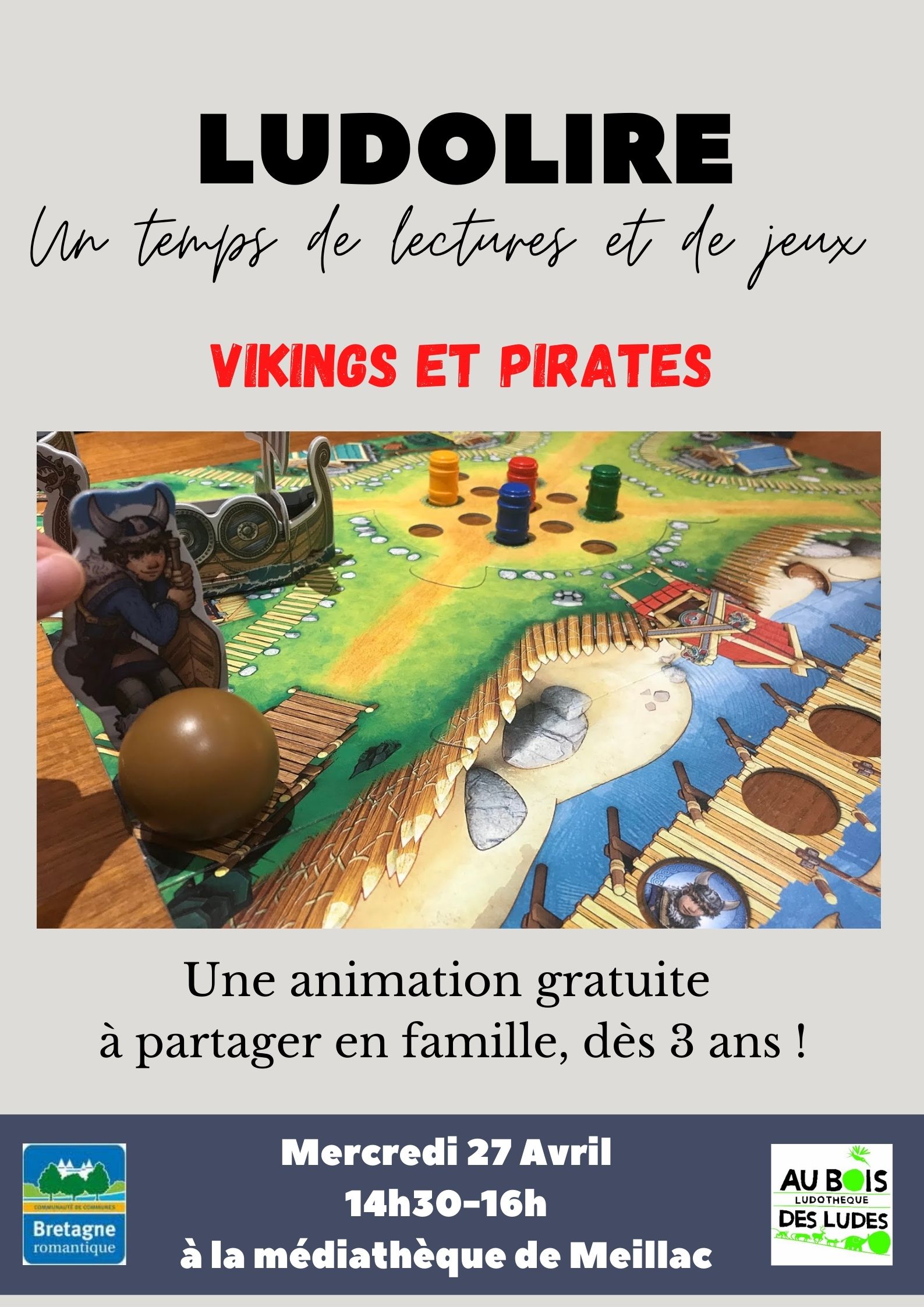 Jeux et lectures sur le thème des pirates et vikings. Gratuit et tout public, dès 3 ans. Sans inscription. Entrée libre.