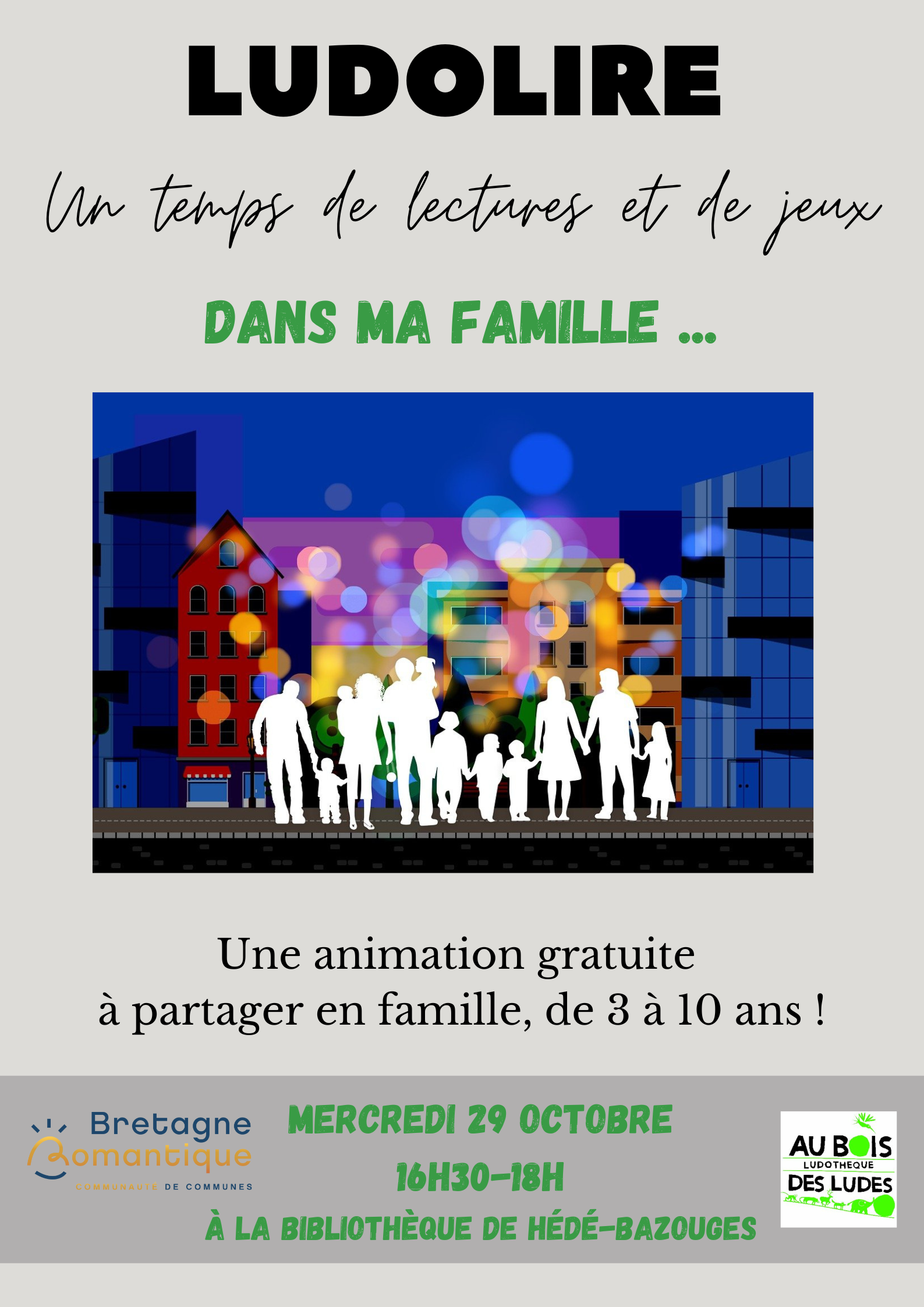 Featured 16 h 30 min - 18 h 00 min Ludolire « dans ma famille » Featured octobre 29 @ 16 h 30 min - 18 h 00 min Ludolire « dans ma famille » Lectures et jeux pour toute la famille. Gratuit.