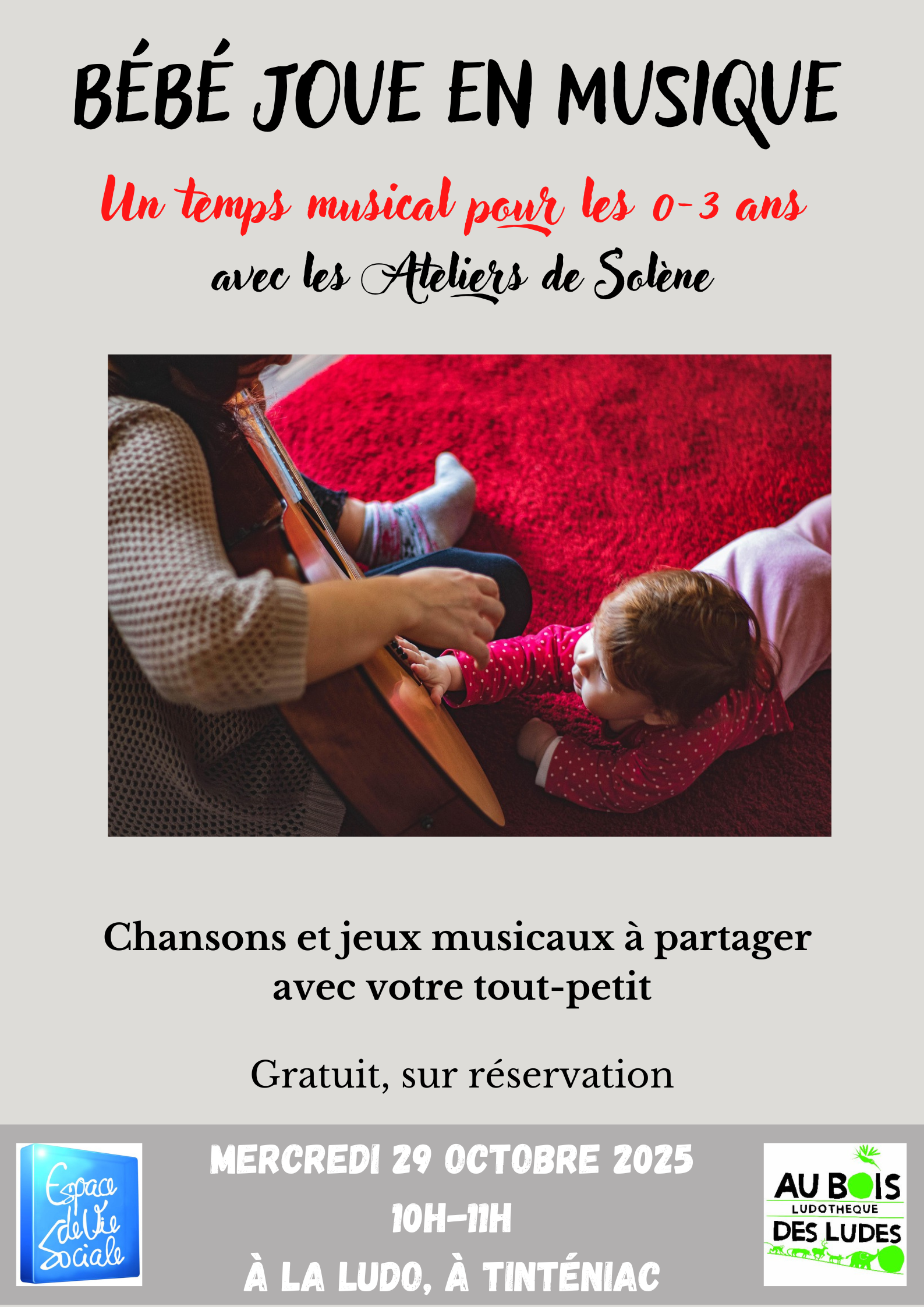 Featured 10 h 00 min - 11 h 00 min Bébé joue en musique – COMPLET Featured octobre 29 @ 10 h 00 min - 11 h 00 min Bébé joue en musique – COMPLET
